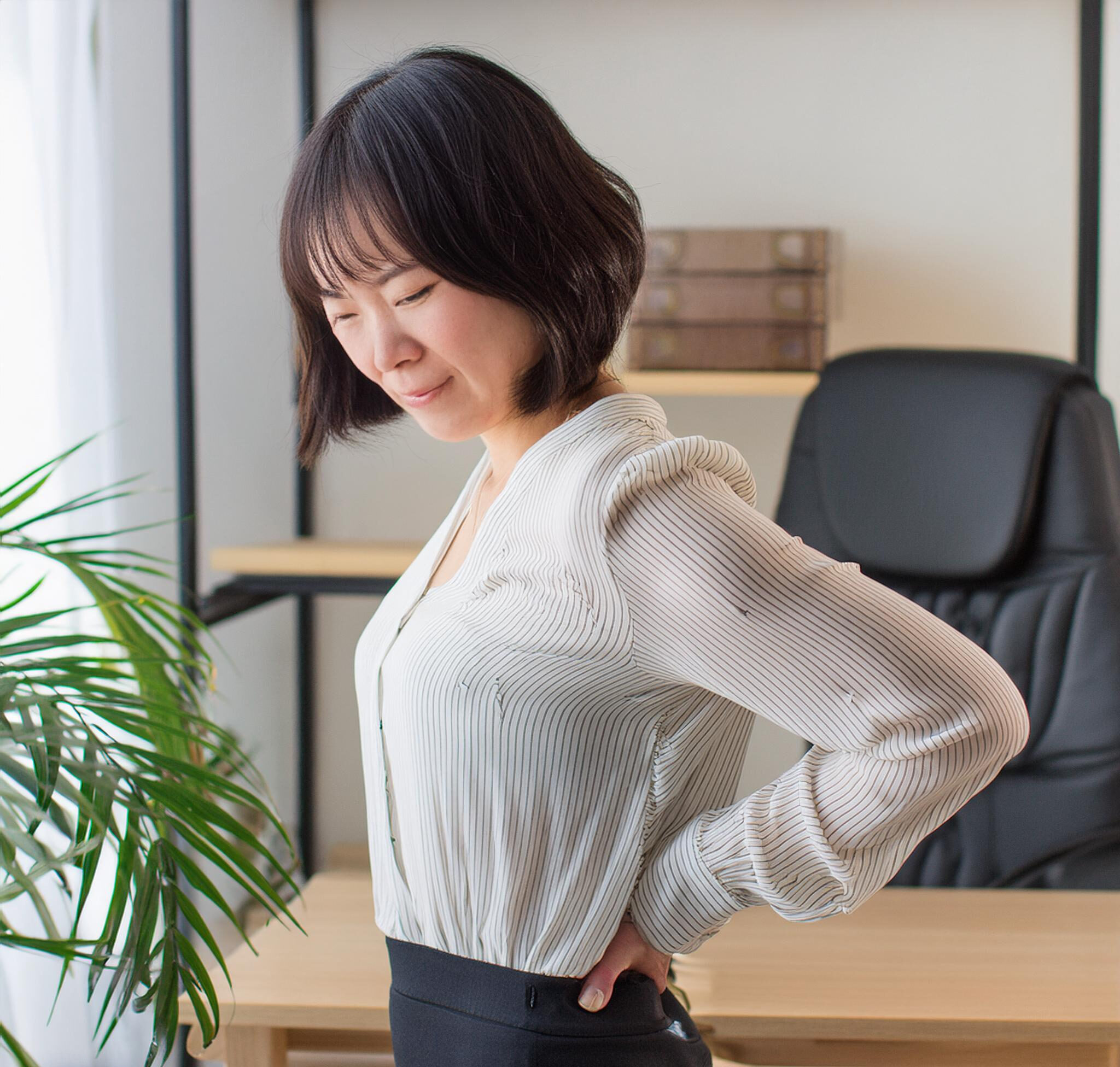 「デスクワーク中、腰が反ってしまって辛くなるんです…」